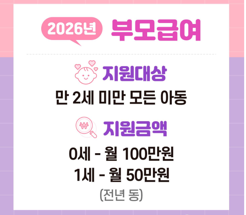2024년 대폭 인상되었던 부모급여가 2026년에도 안정적으로 유지되며,