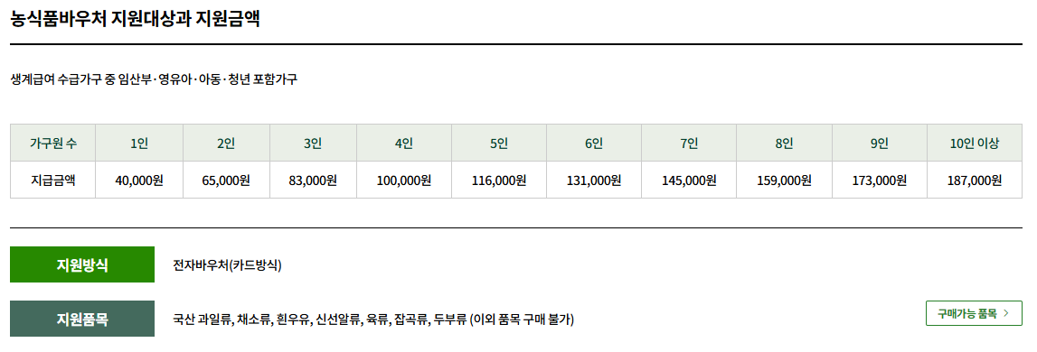 대상이 되신다면 주저 말고 신청하셔서 신선한 우리 농산물로 가족의 건강을 챙기시길 바랍니다.