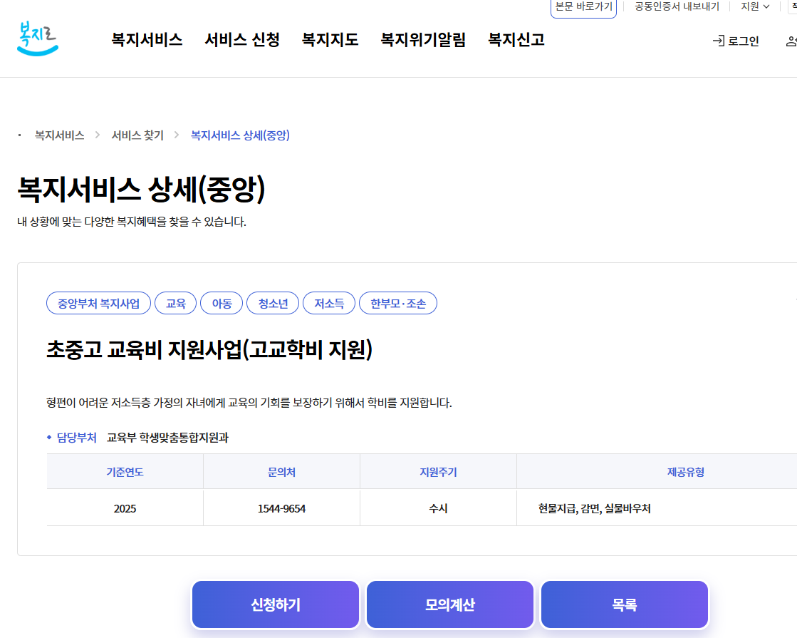 - 신청 기간: 연중 상시 신청 가능 (단, 매년 3월 초~중순에 '교육급여 및 교육비 집중 신청 기간'을 운영하므로 이 시기에 맞추어 신청하는 것이 학기 초 바우처 수령에 유리합니다.)